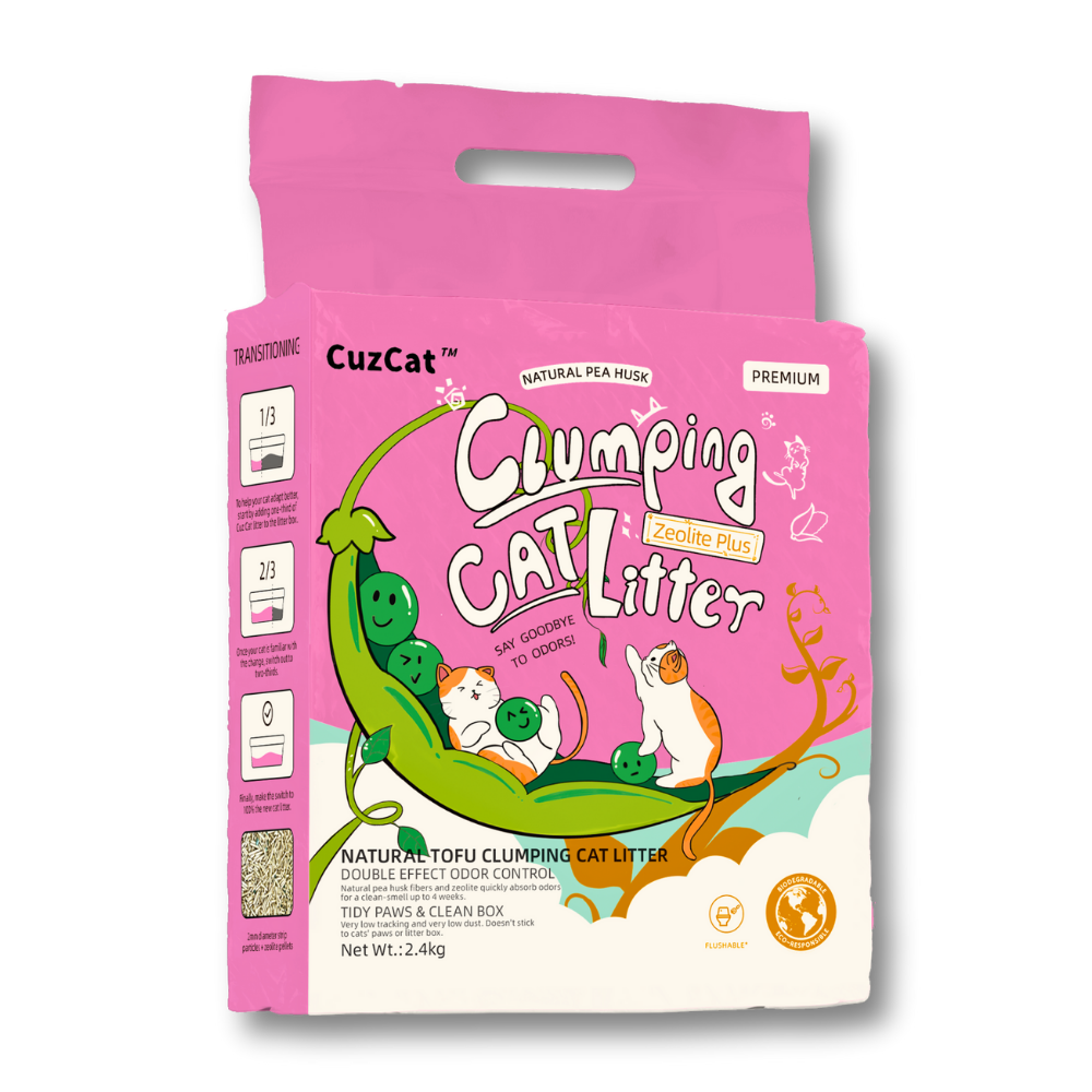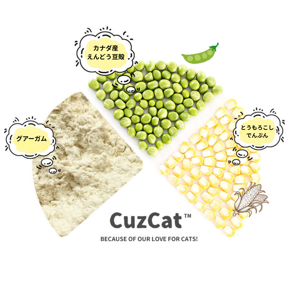 CuzCatは、エンドウ豆繊維とトウモロコシデンプンの黄金比により、圧倒的な吸水スピードを実現。オシッコを瞬時に吸収してガッチリ固めるため、底へのこびりつきを防ぎます。少量で効率よく固まり、経済的です。