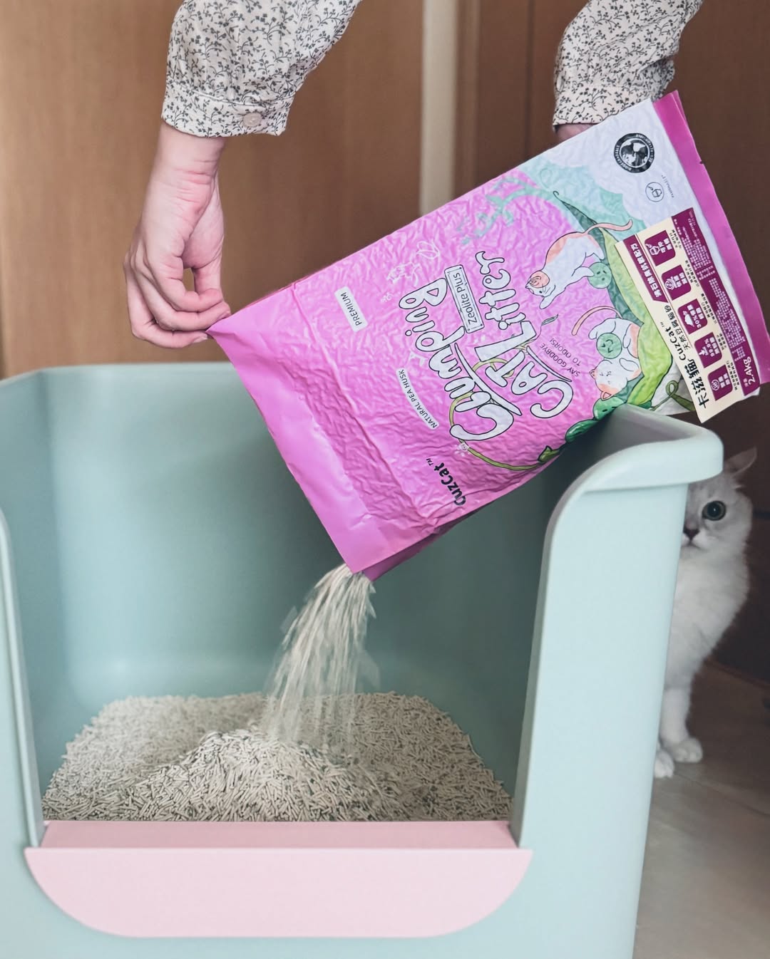 警戒心の強い猫ちゃんの場合、まずは現在お使いの砂にCuzCatを少量混ぜることから始めてください。数日かけて徐々にCuzCatの比率を増やしていくことで、猫ちゃんが新しい感触や香りに慣れ、スムーズに切り替えることができます。